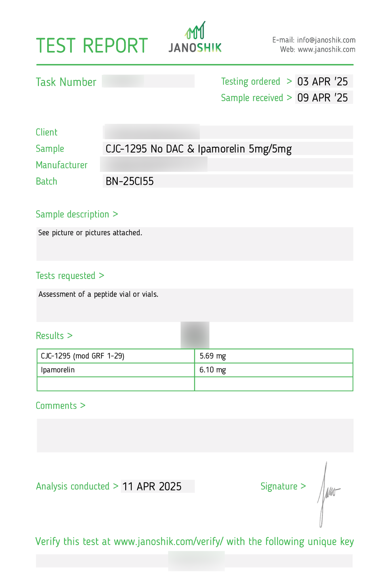 Elke batch CJC-1295 zonder DAC + Ipamorelin wordt grondig getest op zuiverheid en steriele eigenschappen. Wij garanderen 99% zuiverheid met bijgeleverd COA-rapport, zichtbaar bij de productfoto’s.